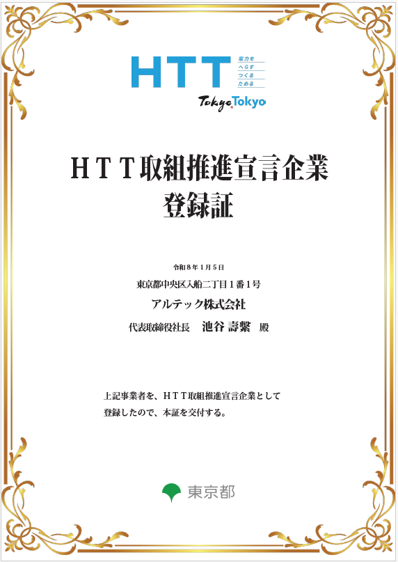 アルテックは、東京都の「HTT取組推進宣言企業」に登録されました。